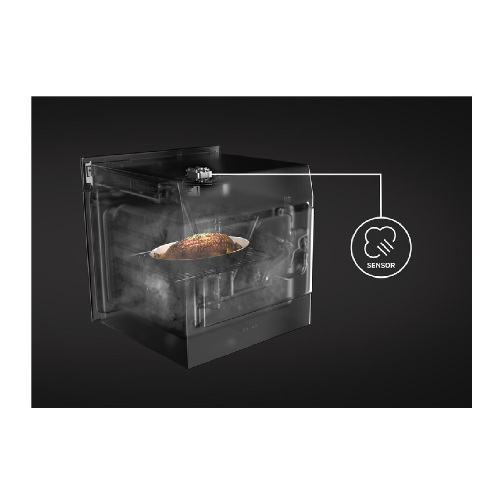 FloodLight: Specially positioned at the front of the oven and angled directly onto the food.