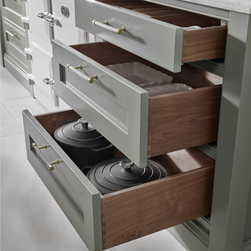The Ovolo door is defined by its inverted outer-frame detail that subtly embellishes the classic Shaker style. It can also be paired with any of the Smith Interiors Shaker beading options for an elegant, decorated kitchen look.
